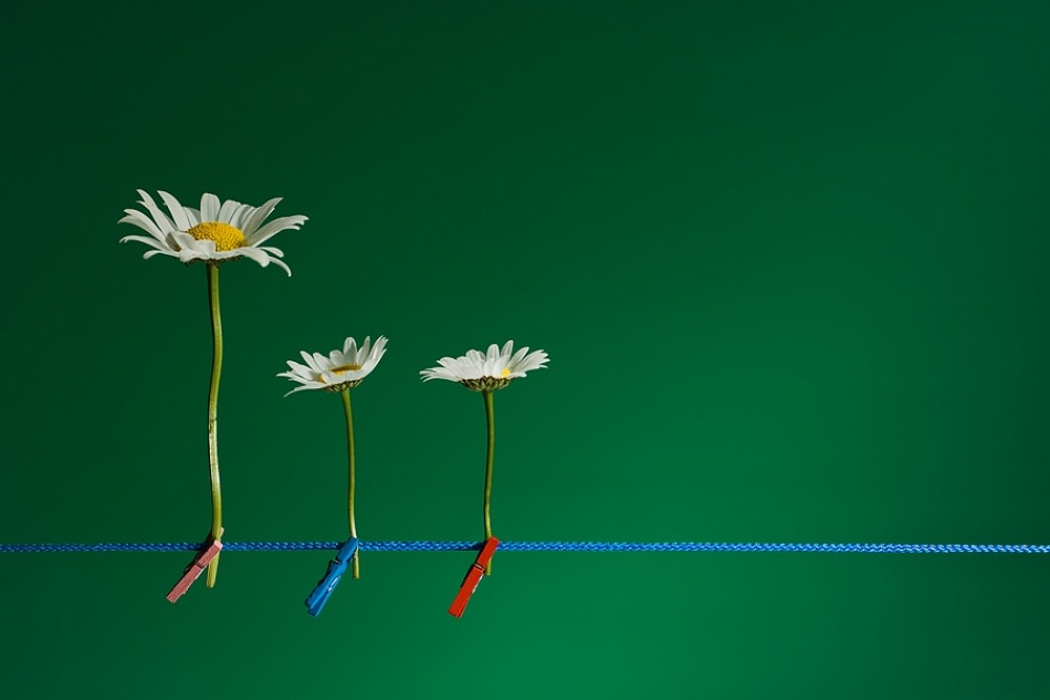 While Tatiana's picture has many features of the classical still life, the work of Carlo Pautasso is the absolute opposite. His picture is minimalistic and is characterized by a great abstraction. He used only primary colours. Green, yellow, blue, red and white. Here is no room for a table with gorgeous flowers. No, there are only three humble daisies pinned on a plastic rope. An unprecedented small number for people who immediately associate the word flower still life with the lavish 17th century paintings. The old paintings especially evoke admiration, but Carlo's image makes you smile. It's a cheerful picture, expressive, witty and surreal. It really gives you that wonderful feeling of spring.